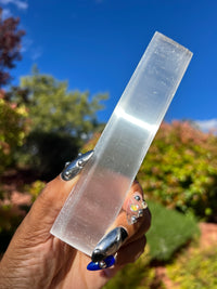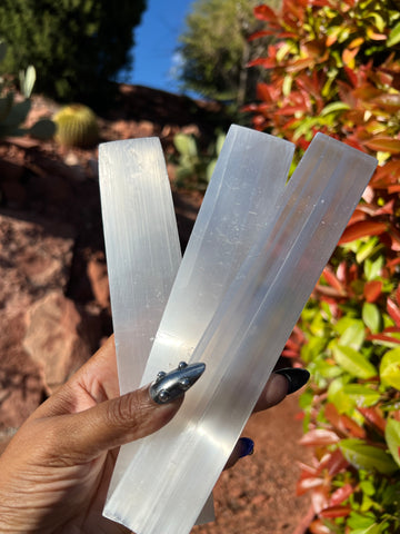 Imperfections: Slight scrapes & chips. Selenite is a softer mineral (2 on the mohs hardness scale), therefore slight imperfections and scratches are inevitable. These plates have slightly more scrapes/ chips than usual.