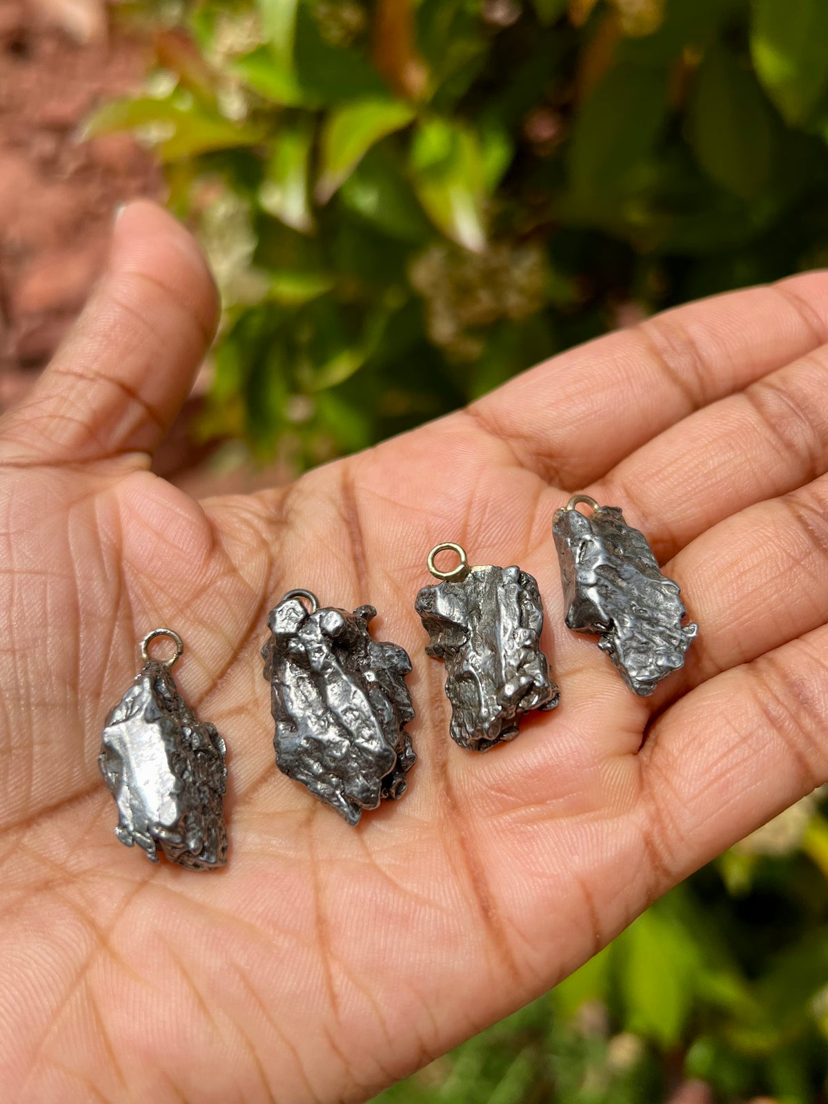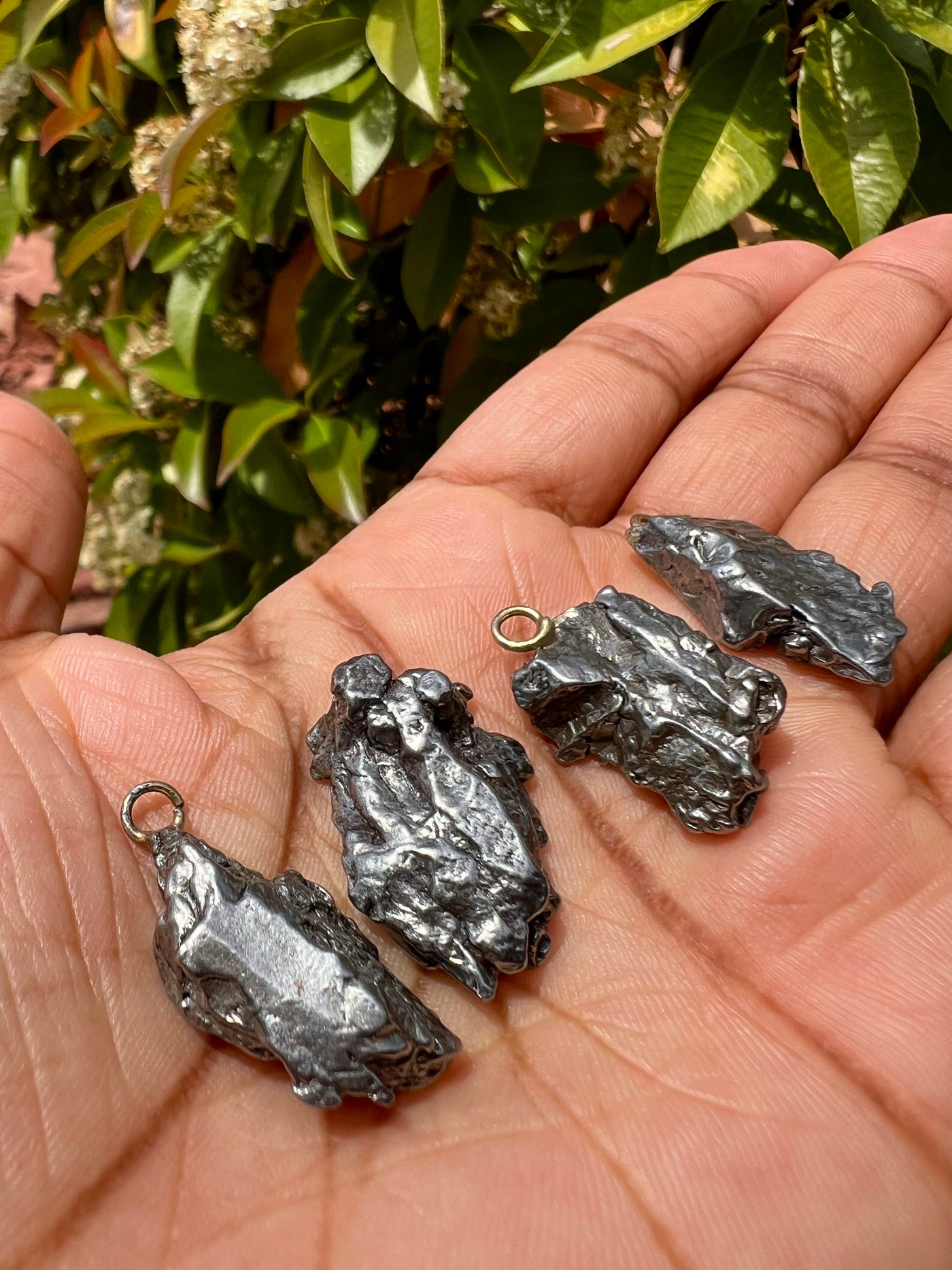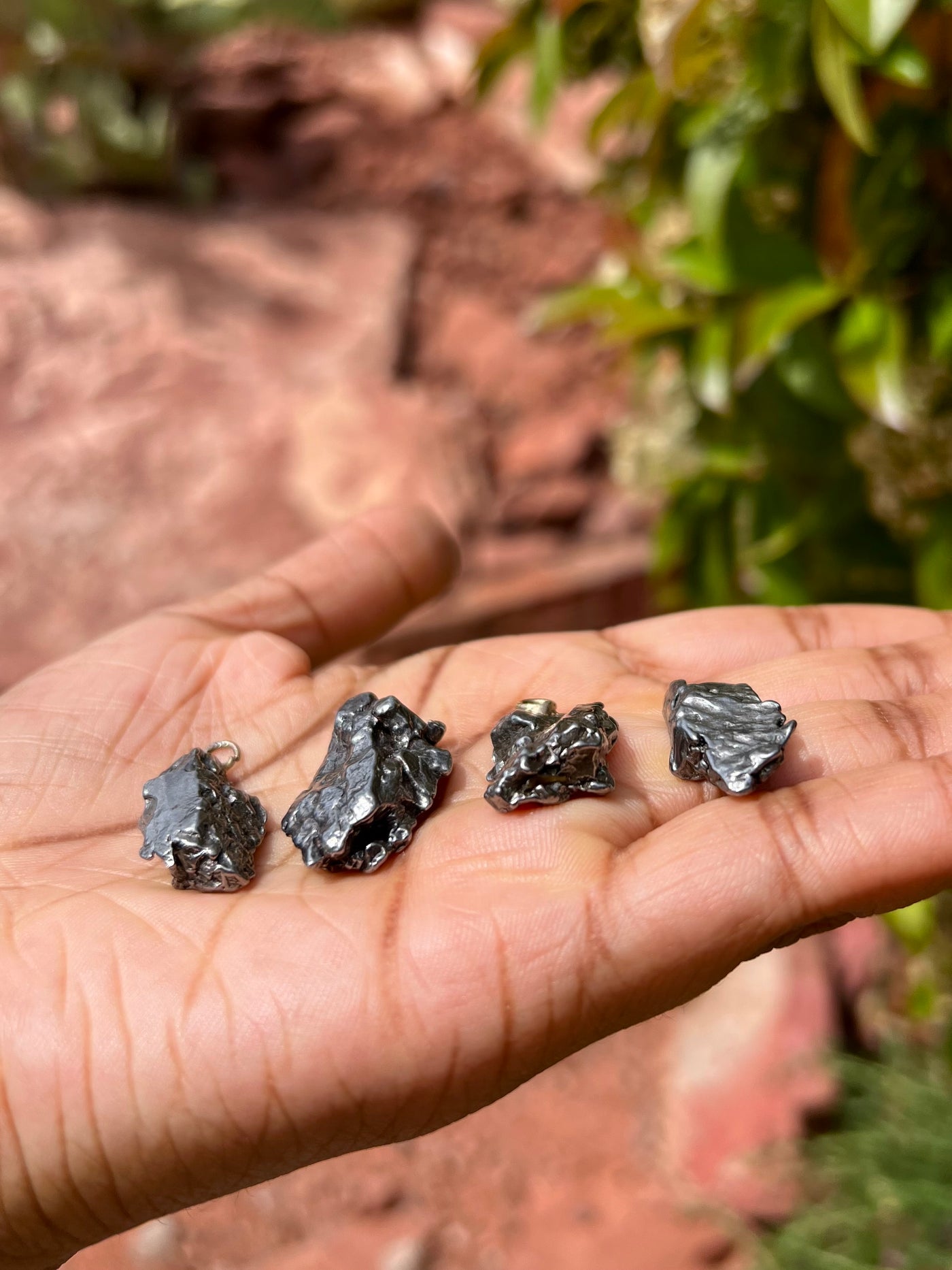 You will receive: -ONE Meteorite (Campo del Cielo, Argentina) -Approx. 1" long-Approx 7.5-12 gramsYour exact pendant will be intuitively selected. Necklace not included.