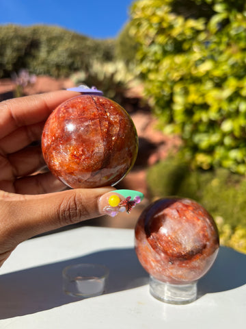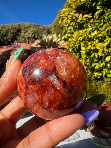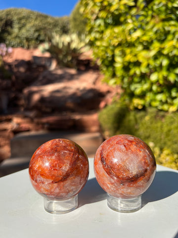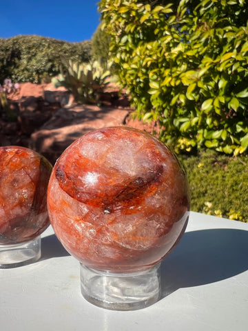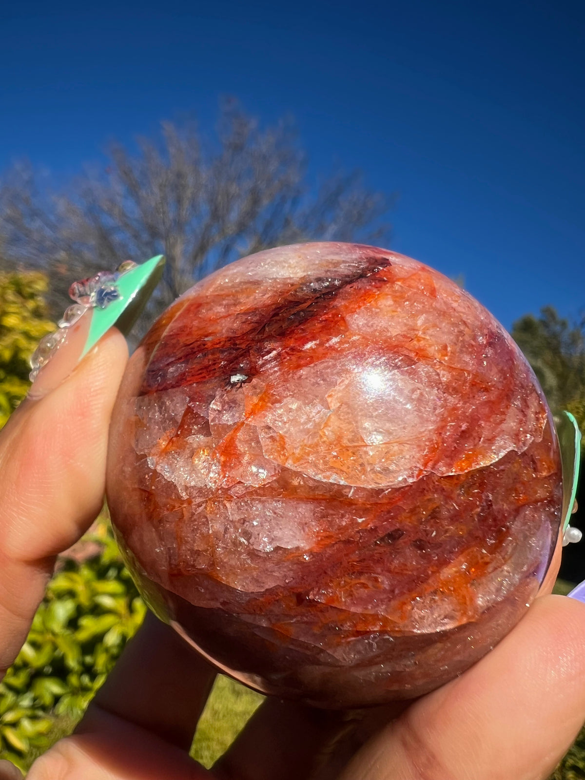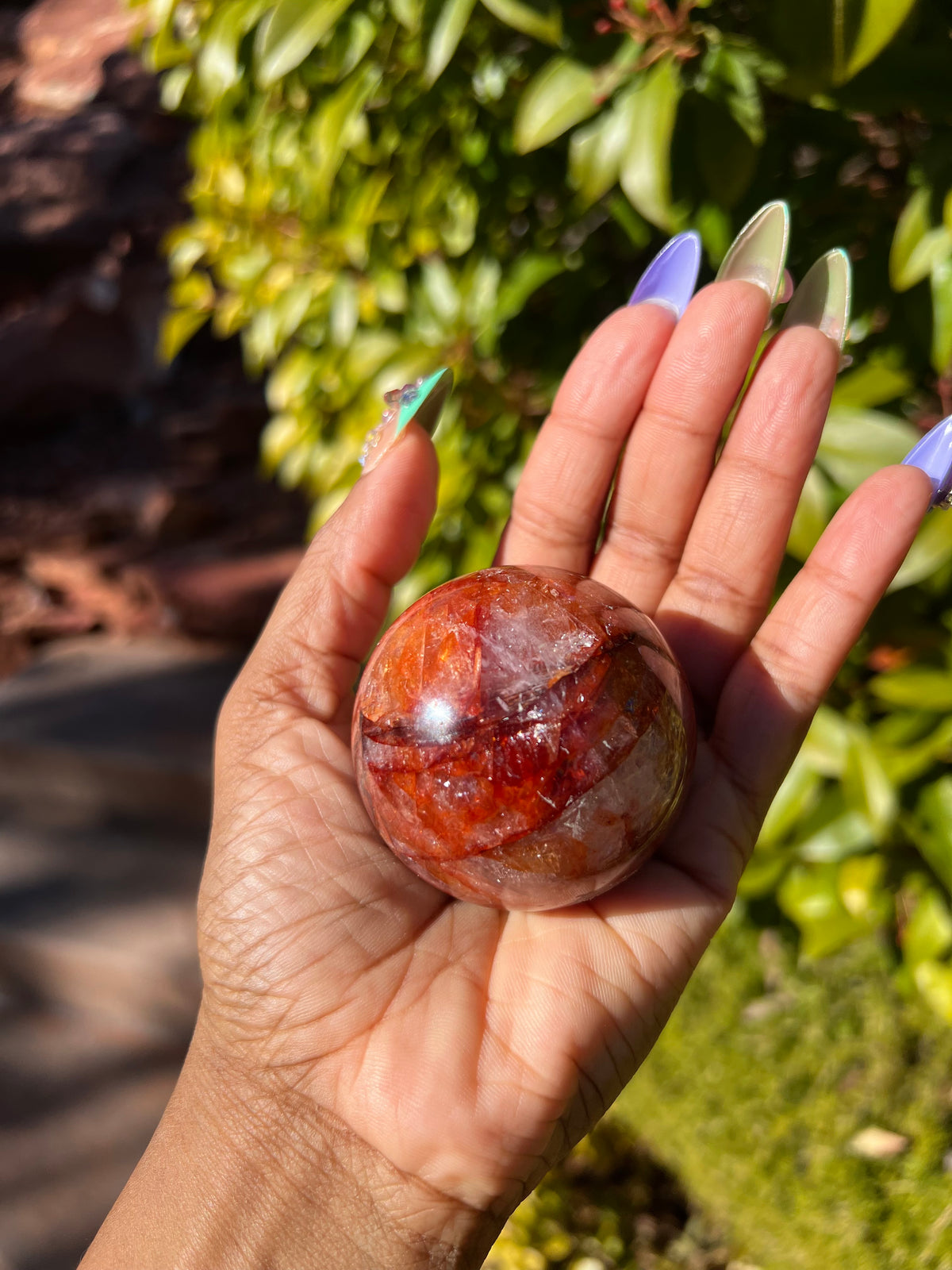 This sphere is natural hematoid quartz that has been heat-treated to enhance the fiery red color! 🔥Â