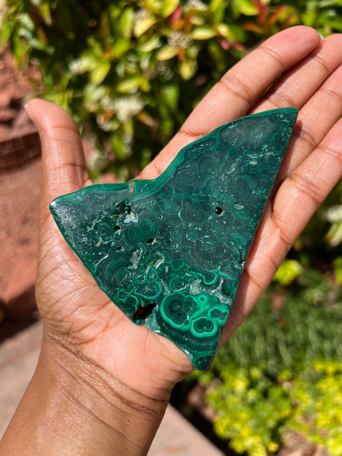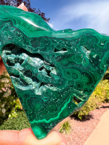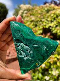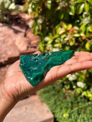 Safety: *This specimen is polished on the 2 largest sides, making it a safer form of malachite. Please do not attempt to carve, cut, or hand polish, as malachite is toxic in its raw form.*